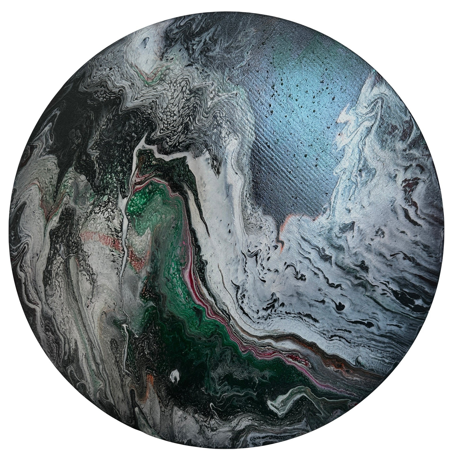 This acrylic pour painting represents the fictional planet of Dagobah, from the StarWars movie franchise.