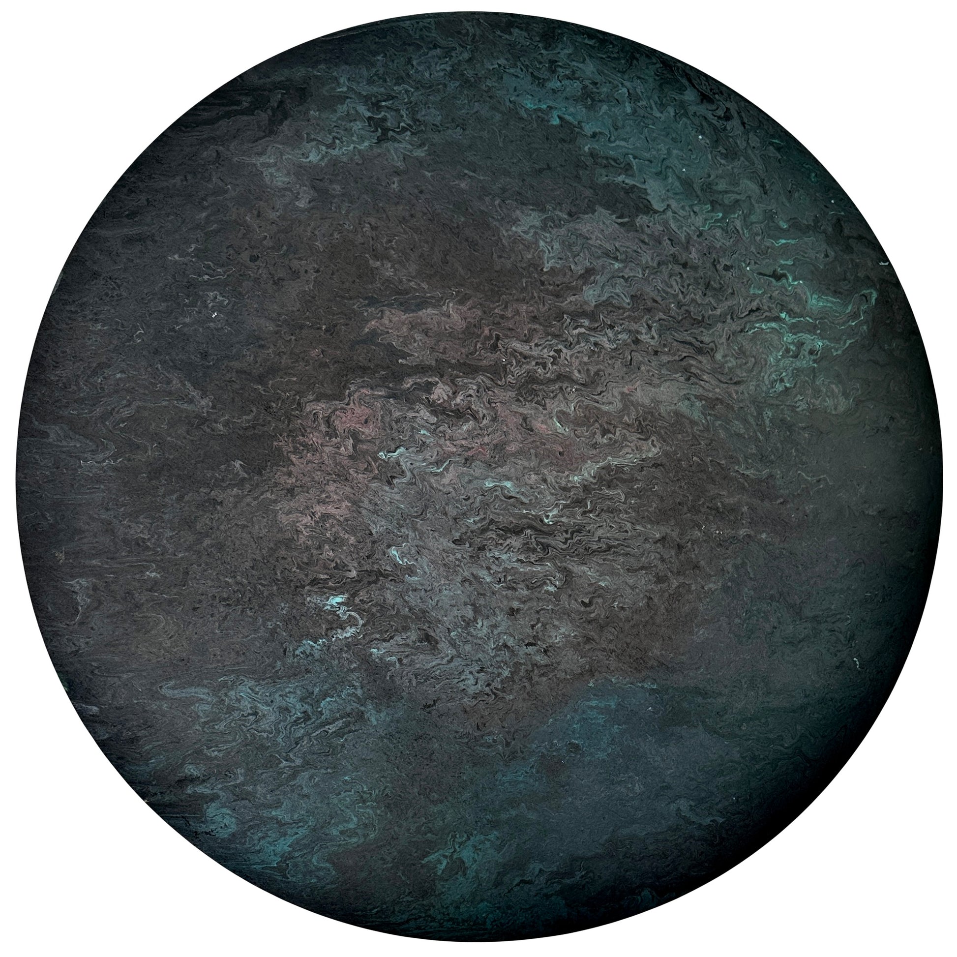 This acrylic pour painting represents the Europa Moon which orbits Jupiter in our Solar System.
