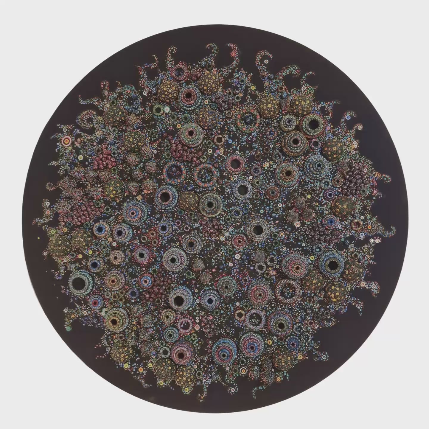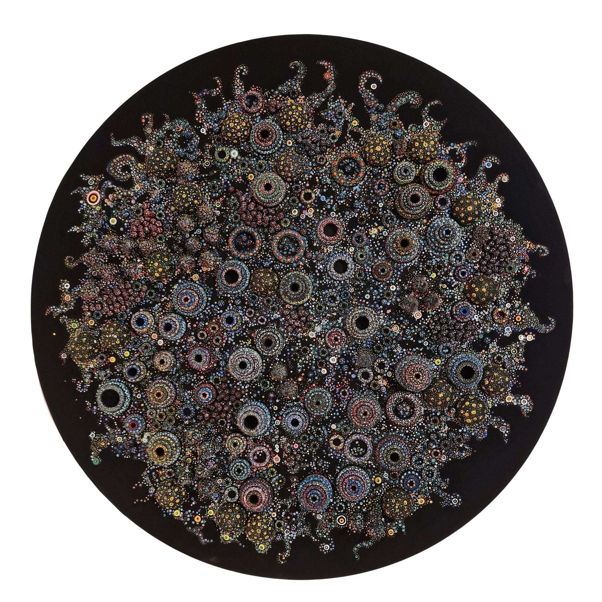 90cm diameter | Wall Sculpture with intricate dot work in multi colours including UV reactive pigment.